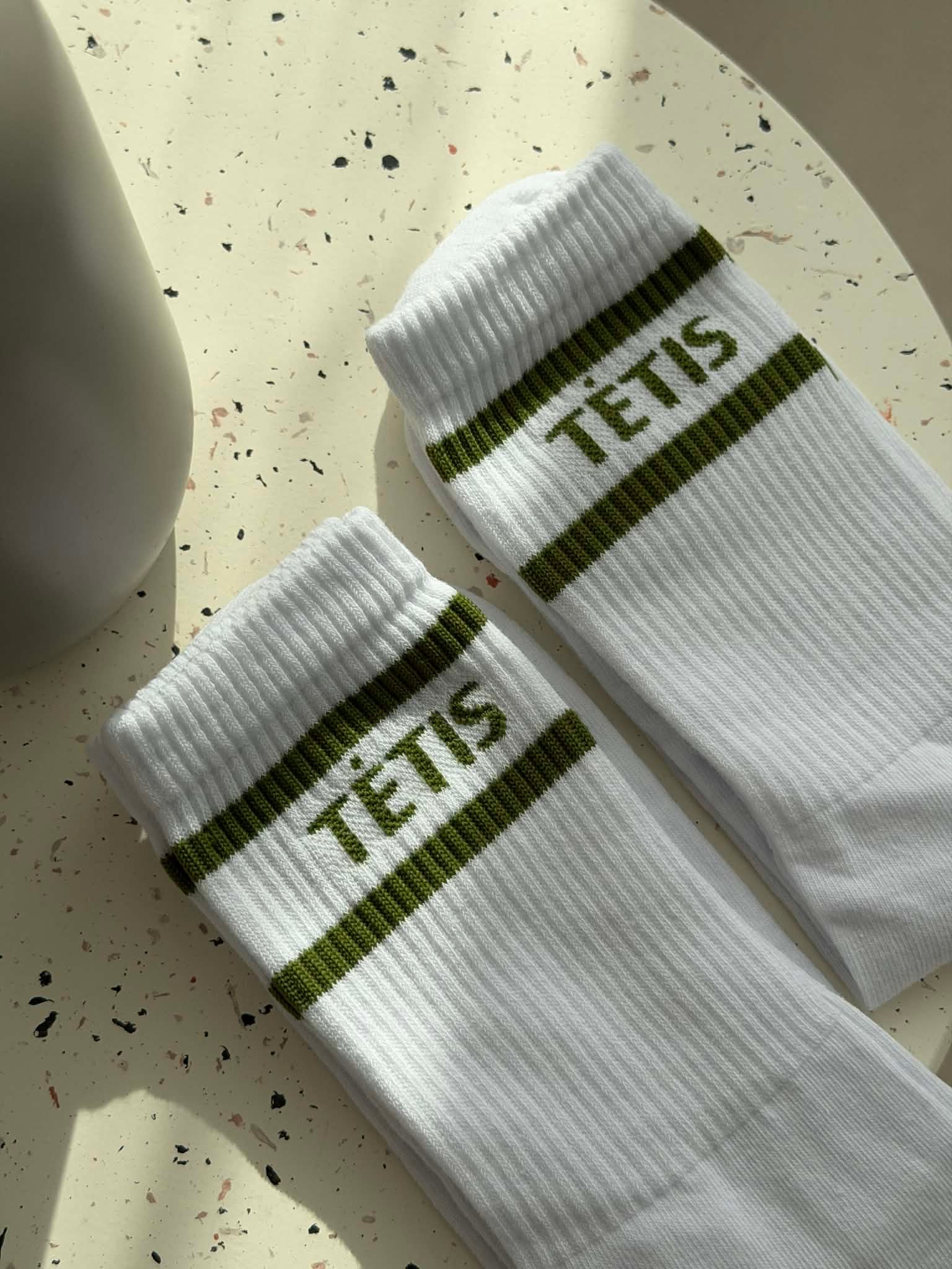 Baltos Tėtis kojinės žalia juostelė