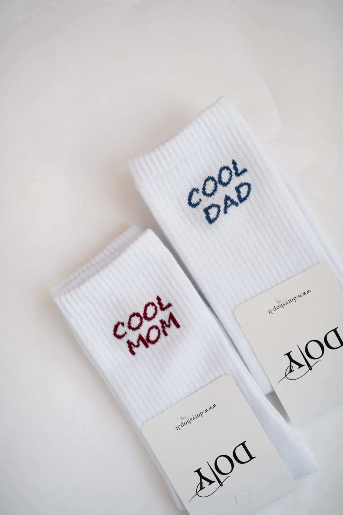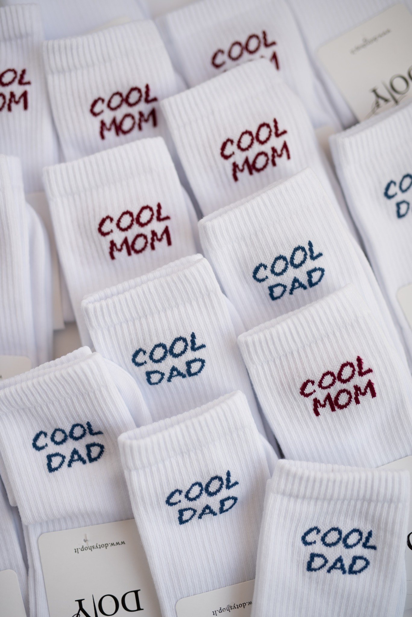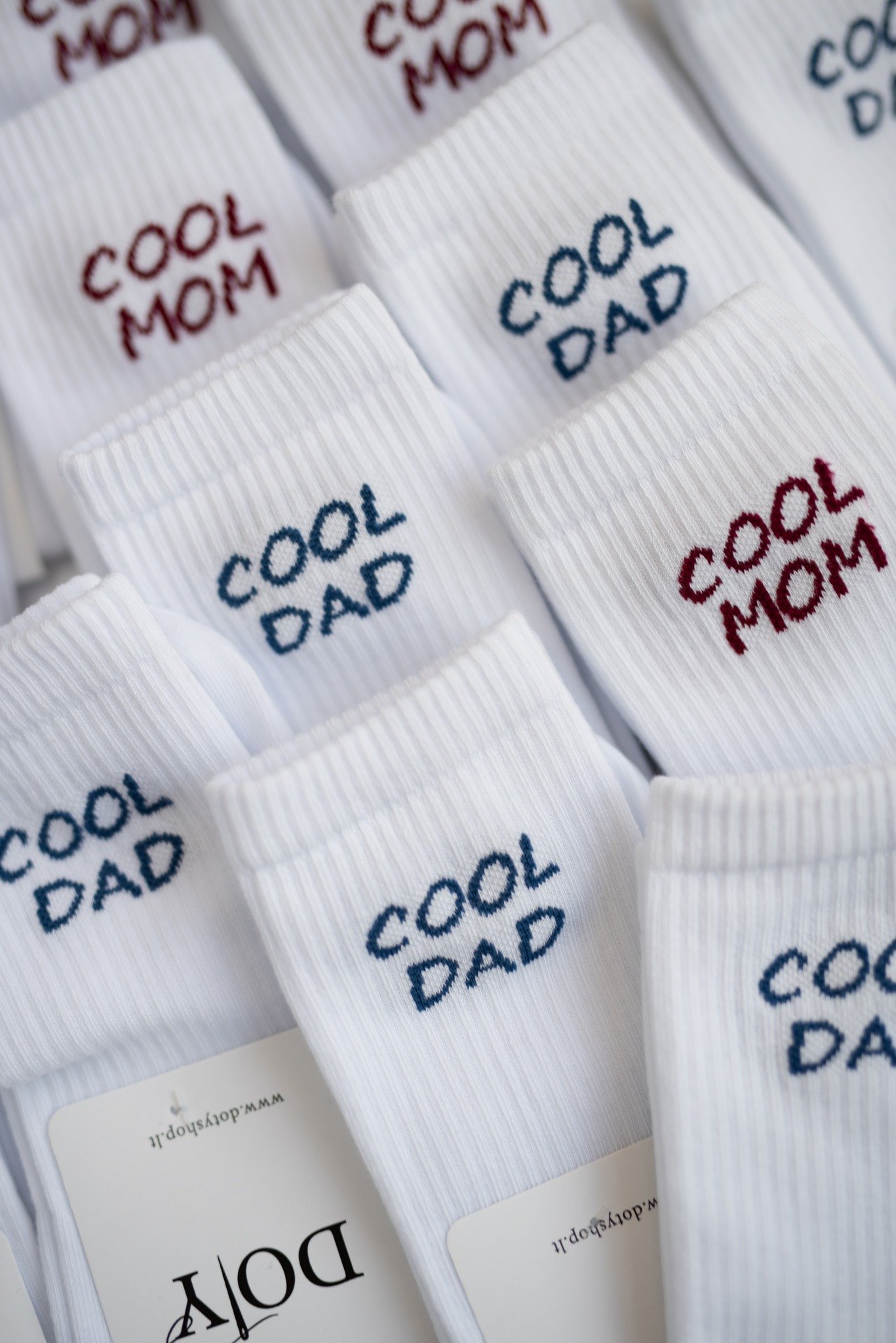 Kokybiškos Classic Sport Socks modelio kojinės su iš abiejų pusiu įaustu užrašu Cool moms/Cool dads.