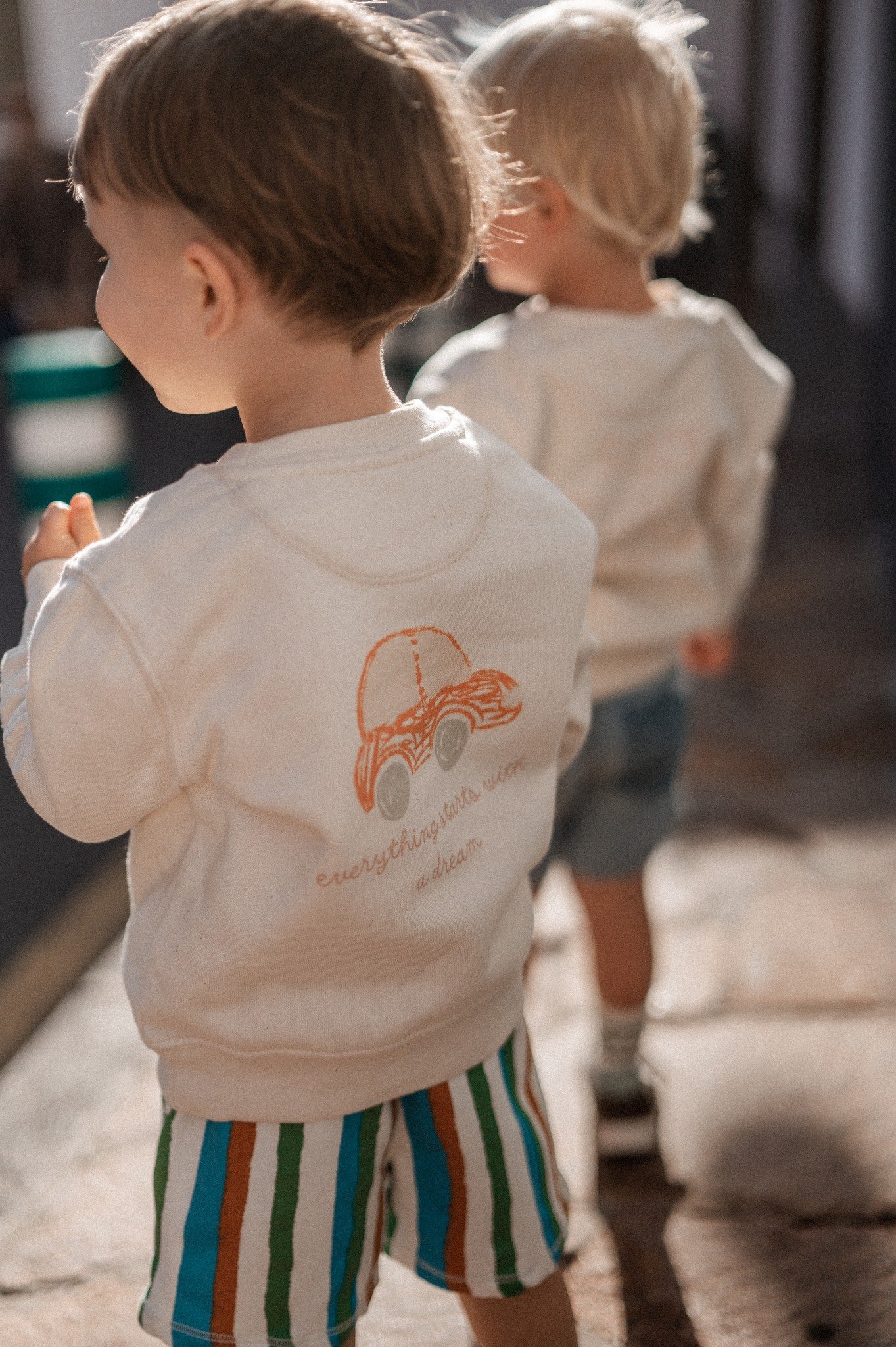 Džemperis su aplikacija nugaroje, vienodos spalvos galimos vaikams ir suaugusiems.