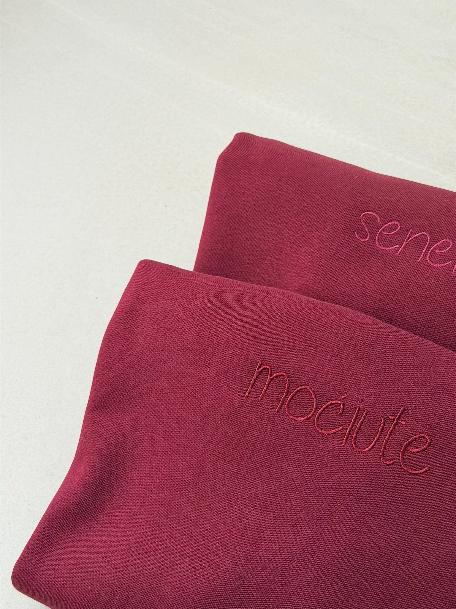 Sudėtis: 85% medvilnė, 15% perdirbtas poliesteris. Audinys švelnus ir išlaikantis forma.