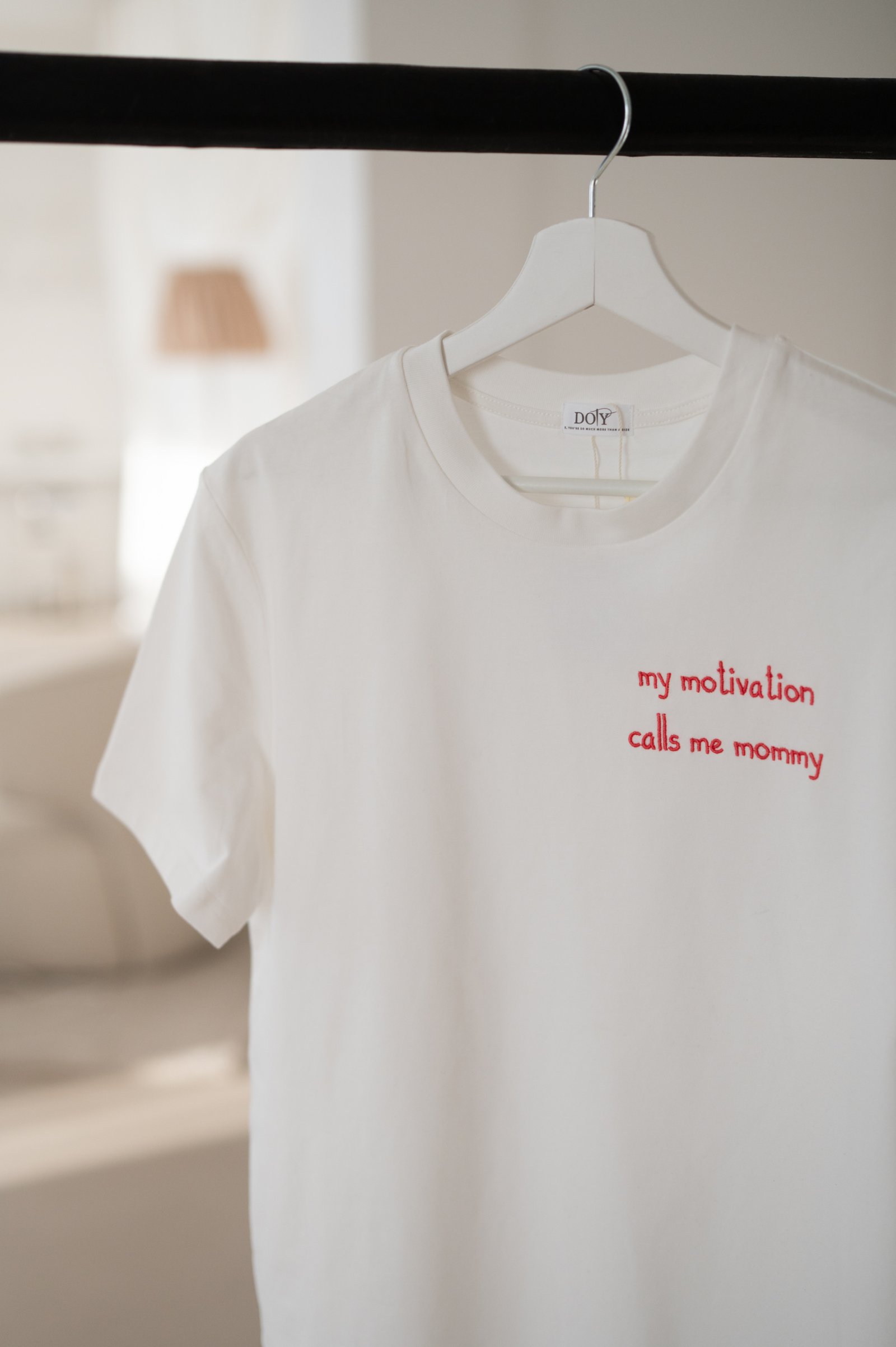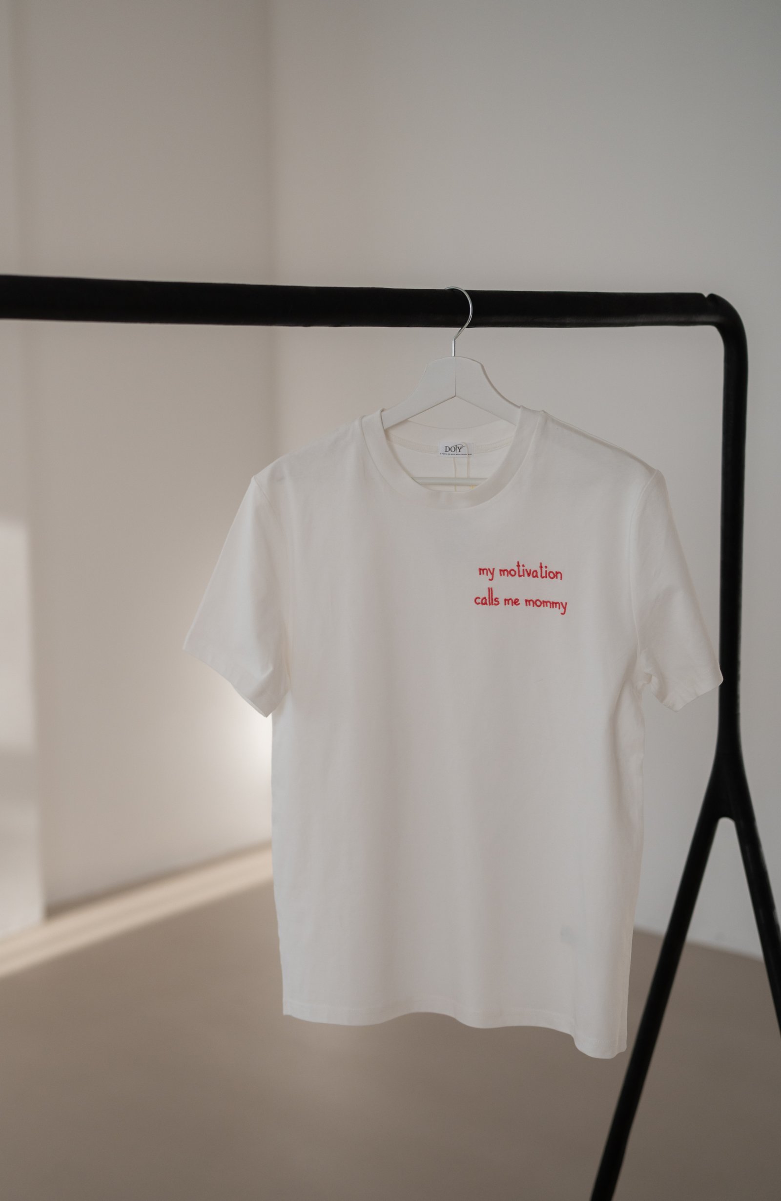 Visų spalvų marškinėliai siuvinėjami raudona spalva. Siuvinėjimas atliekamas ant širdies.